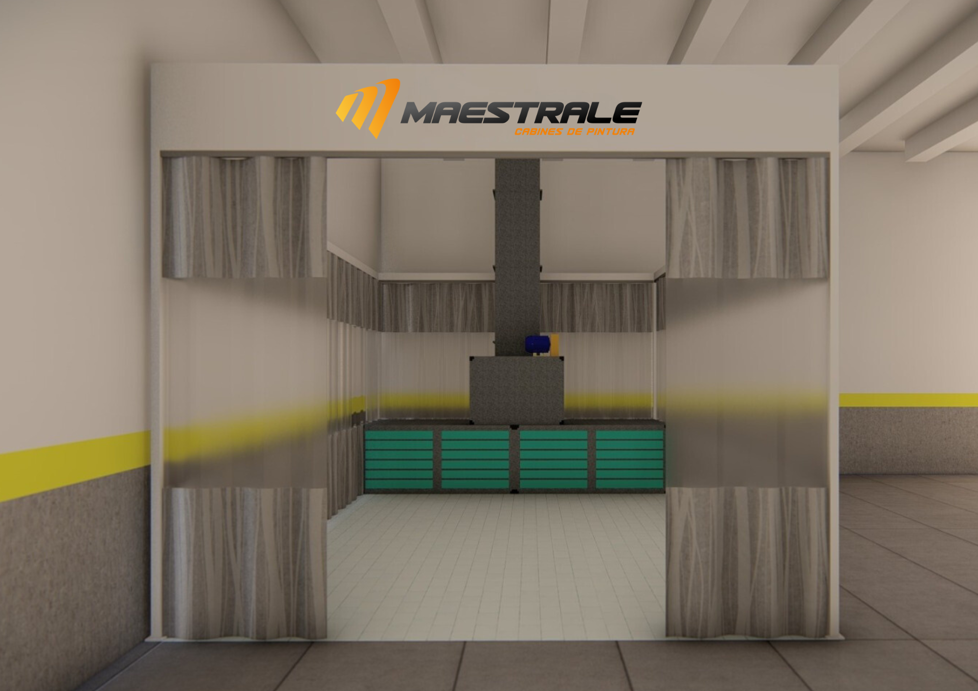 O modelo possui estrutura cortinada e sua base de captação pode ser instalada tanto na parte traseira do equipamento quanto no piso, de acordo com a necessidade do cliente.