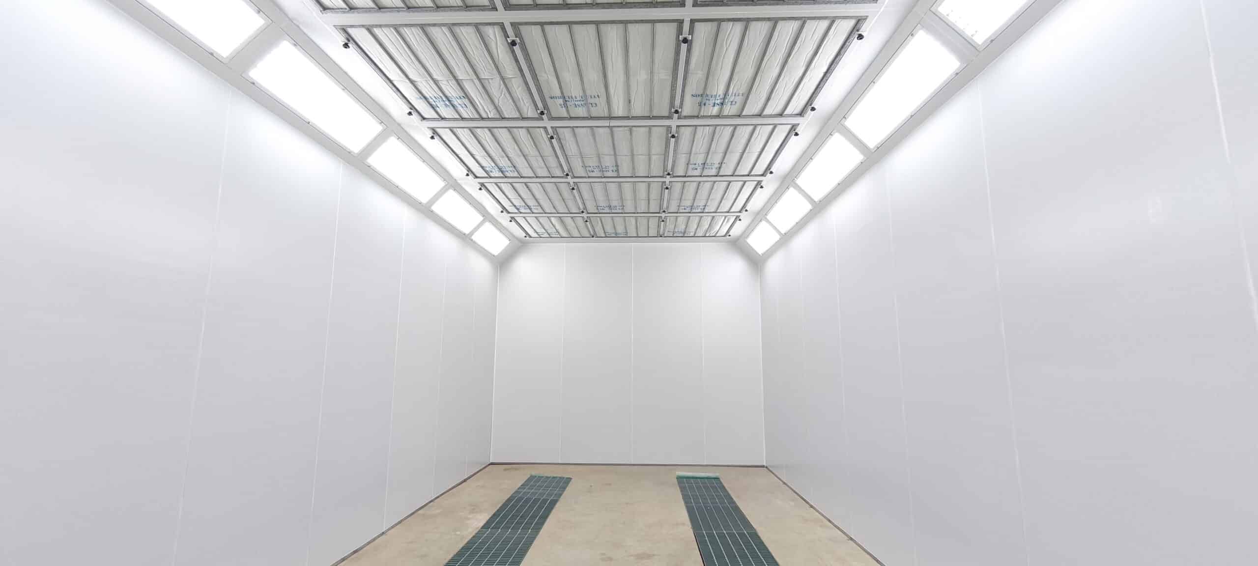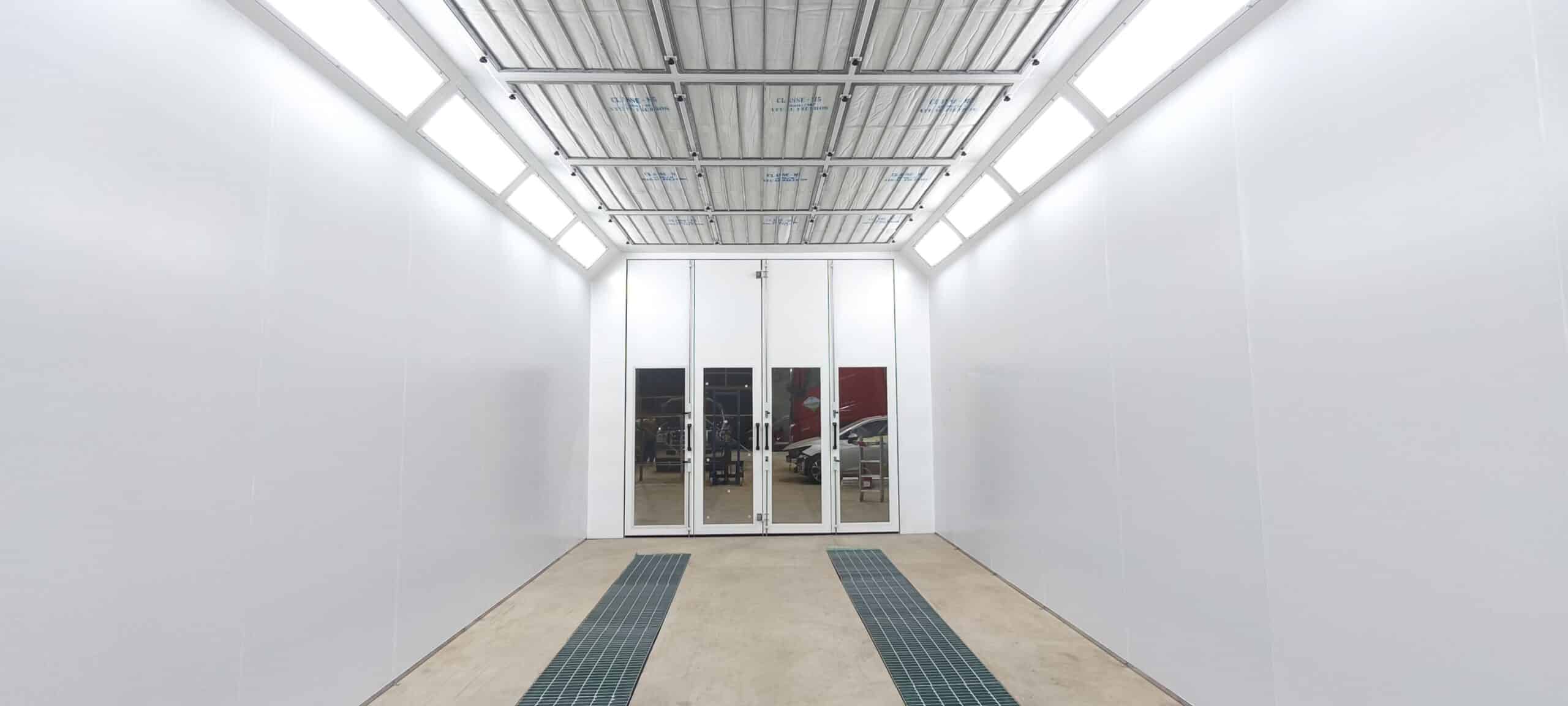 Cabine de Pintura Automotiva modelo LEVANTE, flexibilidade de instalação, sistema de aquecimento e pressão positiva